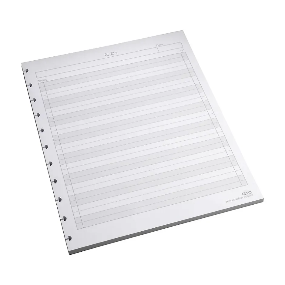 Complete your Staples Arc binder system with this To-Do filler paper. The form-style pages feature spaces to assign priority levels and write down lists of actionable items, and the white background helps writing stand out for better readability. This Staples Arc white filler paper features heavyweight construction for long-lasting durability, so the pages can be easily filed away for future reference.
