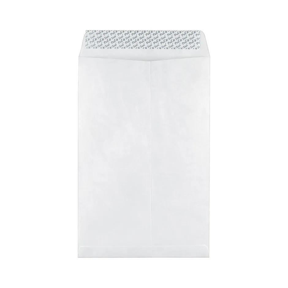 Store or mail documents safely with these sturdy Tyvek catalog envelopes. Each one is crafted with for heavy-duty durability that protects contents against ripping, punctures and water, while the QuickStrip closure feature lets you quickly close it by simply removing the strip and pressing it shut. These Staples catalog envelopes don’t require any sponges or water to seal.