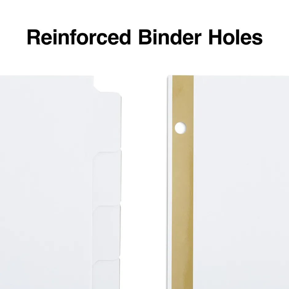 Get binders organized with these Staples eight-tab write-on dividers. Each divider has clear, reinforced hole edges to help prevent them from ripping out, while the laminated tabs let you write on them with just about any writing instrument. These Staples eight-tab write-on dividers provide ample amounts of space for labeling, and each tab can be erased and reused as often as needed.