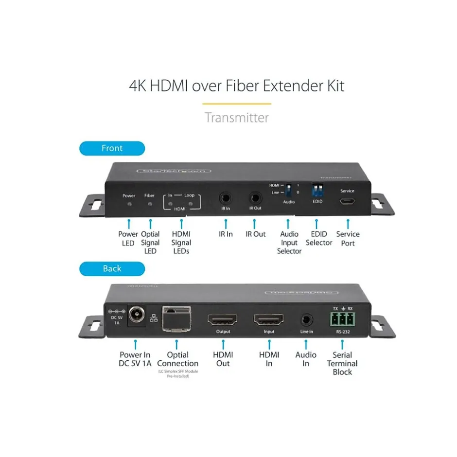 4K HDMI over Fiber Extender Kit, 4K 60Hz up to 3300ft/1km (Single Mode) or 1000ft/300m (Multimode) LC Fiber Optic, HDR, HDCP, 3.5mm Audio/RS232/IR Extender, Transmitter and Receiver Kit