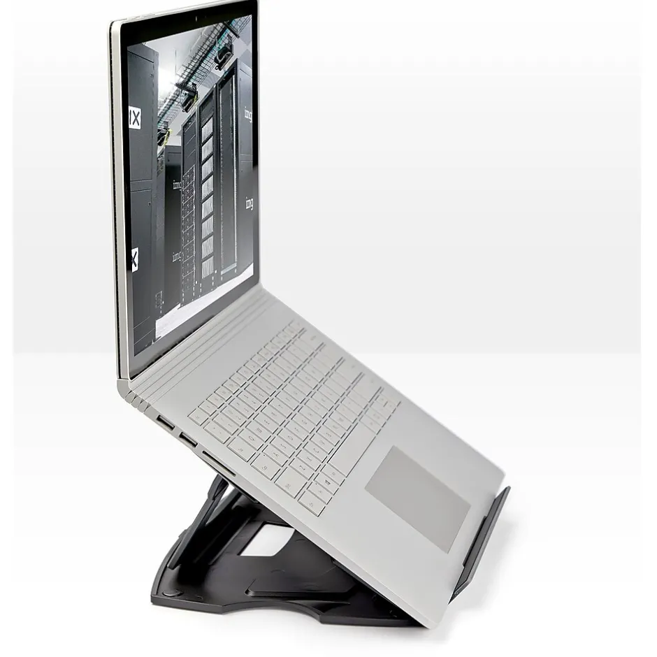 - Work in comfort by positioning your laptop closer to eye level with six adjustable angle settings
