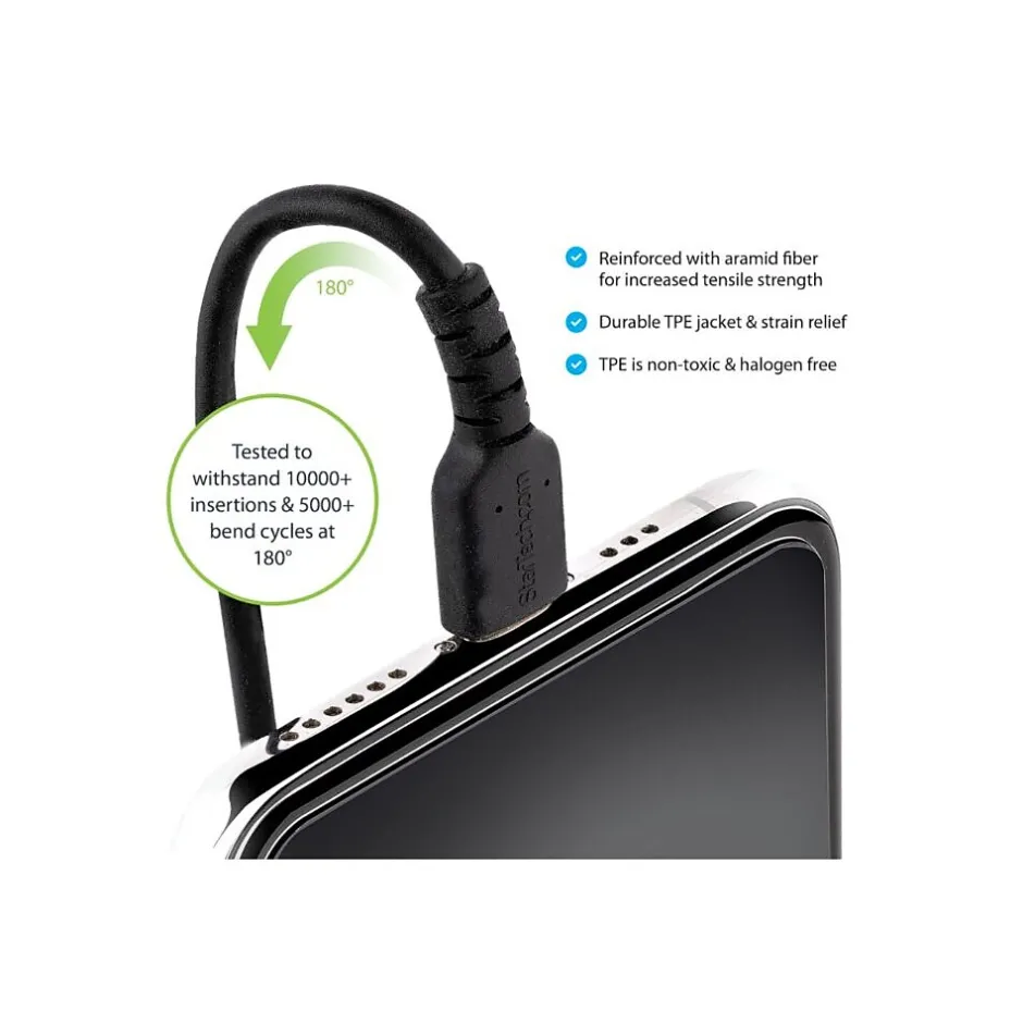 - The durable Lightning charging cable has aramid fiber reinforcement that shelters it from the stress of frequent bends. This also lets the cable flex without over-stretching or damaging the core of the cable.