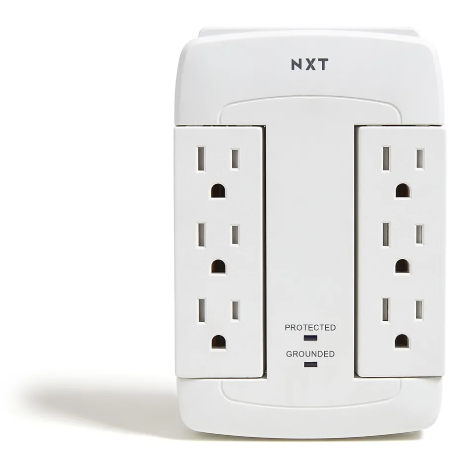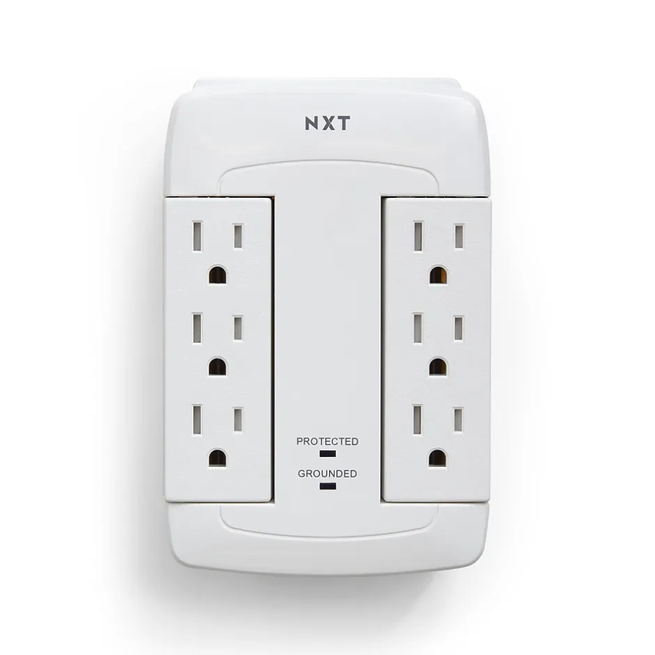 Ensure a safe flow of electricity with the 900 joules of energy absorption available with this wall tap surge protector. Various electronic equipment can connect to the six AC outlets while you charge mobile devices through the two USB ports. Swiveling outlets provide maximum flexibility for plugging in devices. This NXT Technologies™ six-outlet two-USB wall tap surge protector has a robust plastic housing that helps enhance durability. Connects directly to the outlet without added cords or cables for a more organized space.