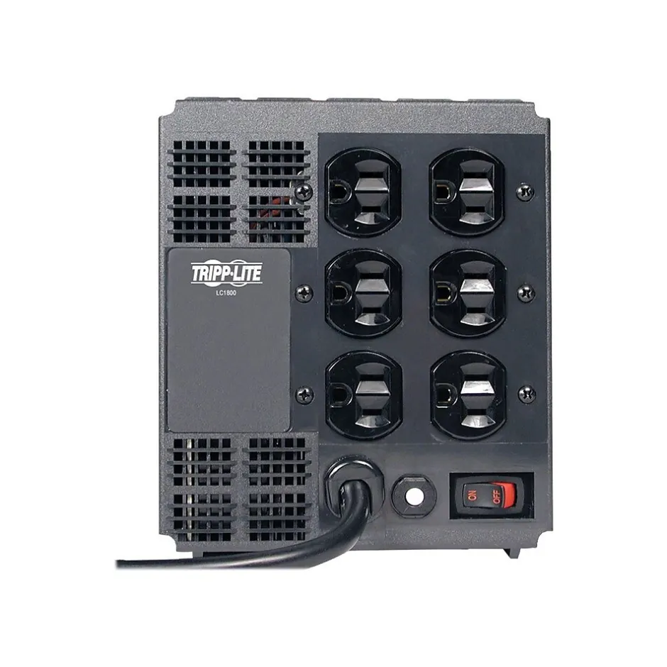 Tripp-Lite LC1800 Power conditioner holds usable 120 V nominal output during brownouts as low as 89 V and overvoltage’s as high as 147 V. Operates output power rating of 1800 W and supports heavy 120 V loads up to 15 A. Features 7 diagnostic LEDs that indicates input voltage levels, surge suppression status and line fault conditions. Helps to protect sensitive electronics, computer accessories and home theatre equipment from power-related damage/performance problems. Features a 1440 J surge suppression rating to protect against catastrophic surge damage and includes 6′ AC power cord with standard NEMA5-15P input plug. Can withstand load capacity of 1.80 kVA/1.80 kW.