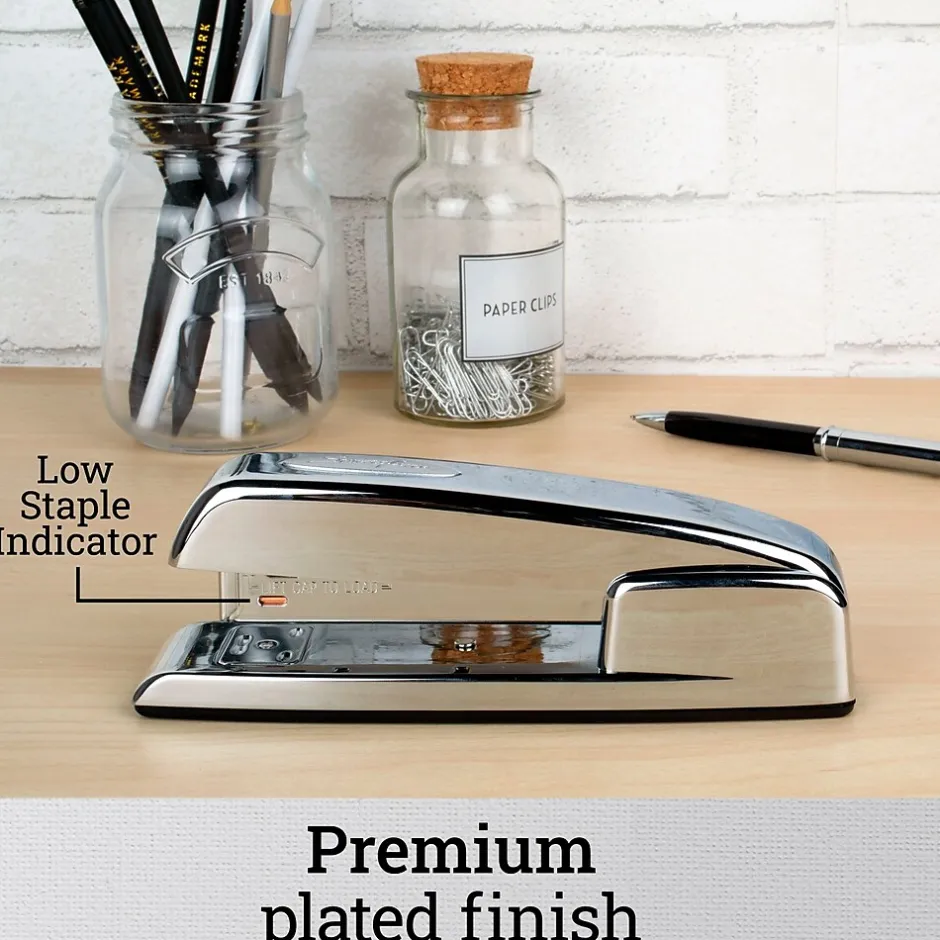 - Stylish, professional chrome desktop stapler is reliable and sophisticated.
