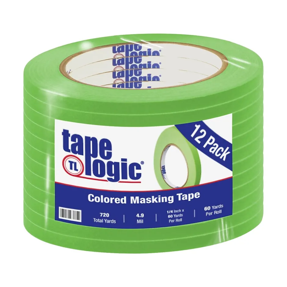 Tape Logic™ Masking tape in light green color measures 1/4″ x 60 yds and is used to color-code shipments or for inventory identification. Tape offers good initial adhesion and is ideal for indoor and room temperature applications.