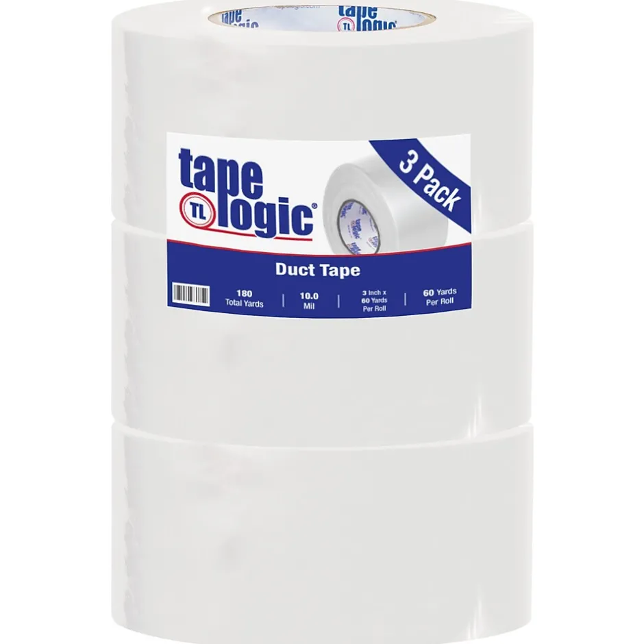 Tape Logic™ White duct tape measuring 3″ x 60 yds is ideal for bundling, sealing and light repair applications. Tear-resistant tape having a thickness of 10 mil adheres well to a wide range of surfaces, sold as 3 per pack.
