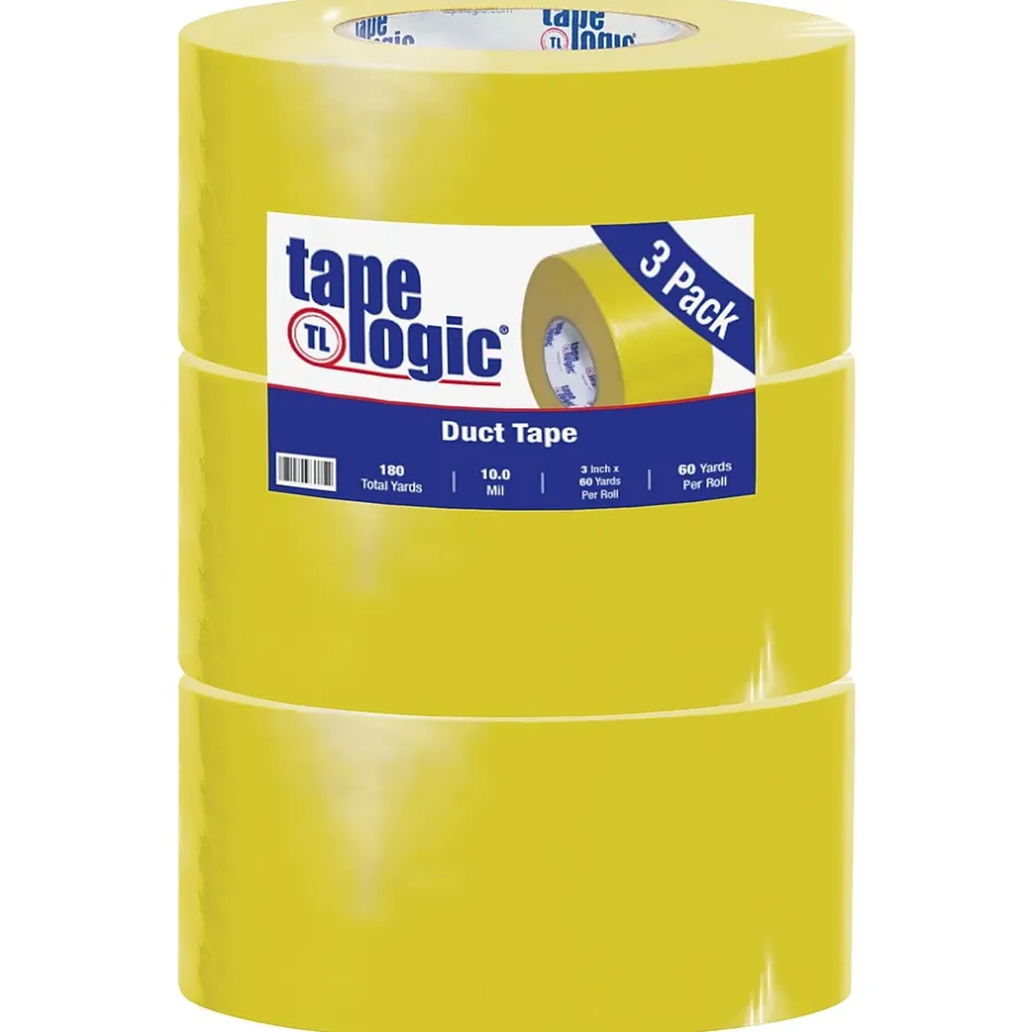 Tape Logic™ Yellow duct tape measuring 3″ x 60 yds is ideal for bundling, sealing and light repair applications. Tear-resistant tape having a thickness of 10 mil adheres well to a wide range of surfaces, sold as 3 per pack.