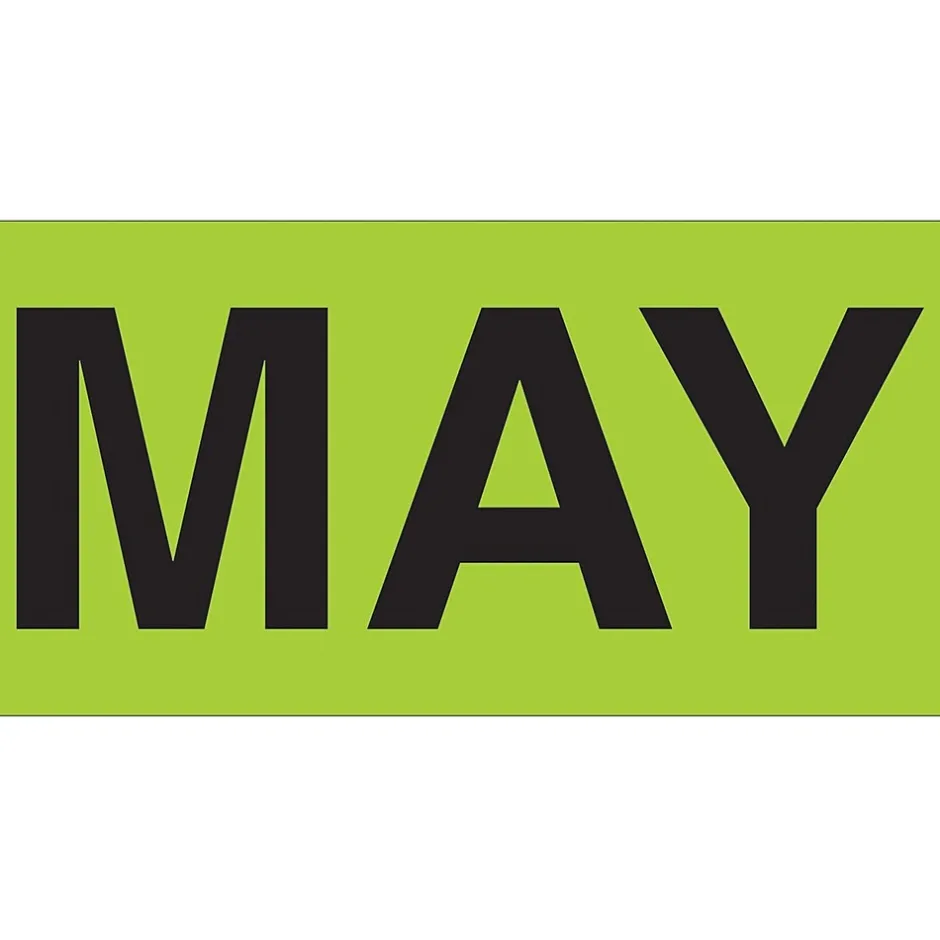 Tape Logicâ„¢ 6″ x 3″ “MAY” Months of the year label in fluorescent green color is printed with black color text. Label in rectangular shape has pressure sensitive adhesive for quick attachment on any surface, sold as 500 per roll.