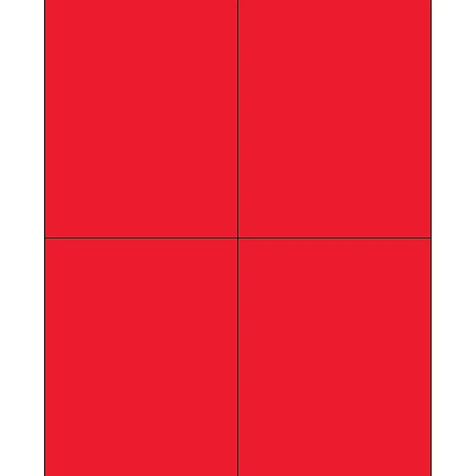4 1/4″ x 5 1/2″ Fluorescent Red Rectangle Laser Labels. Use to create your own product or mailing labels. Labels work with both Laser and ink jet printers. Permanent adhesive. Labels stick to a variety of smooth surfaces including paper, corrugated, plastic, wood, glass and metal.