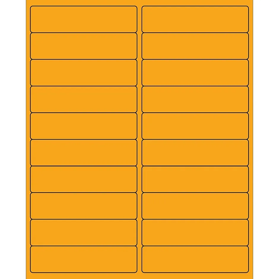 4″ x 1″ Fluorescent Orange Rectangle Laser Labels. Use to create your own product or mailing labels. Labels work with both Laser and ink jet printers. Permanent adhesive. Labels stick to a variety of smooth surfaces including paper, corrugated, plastic, wood, glass and metal.