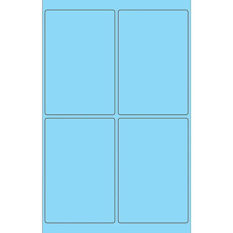 4 x 6″ Fluorescent Pastel Blue Rectangle Laser Labels. Use to create your own product or mailing labels. Labels work with both laser and ink jet printers. Permanent adhesive. Labels stick to a variety of smooth surfaces including paper, corrugated, plastic, wood, glass and metal.