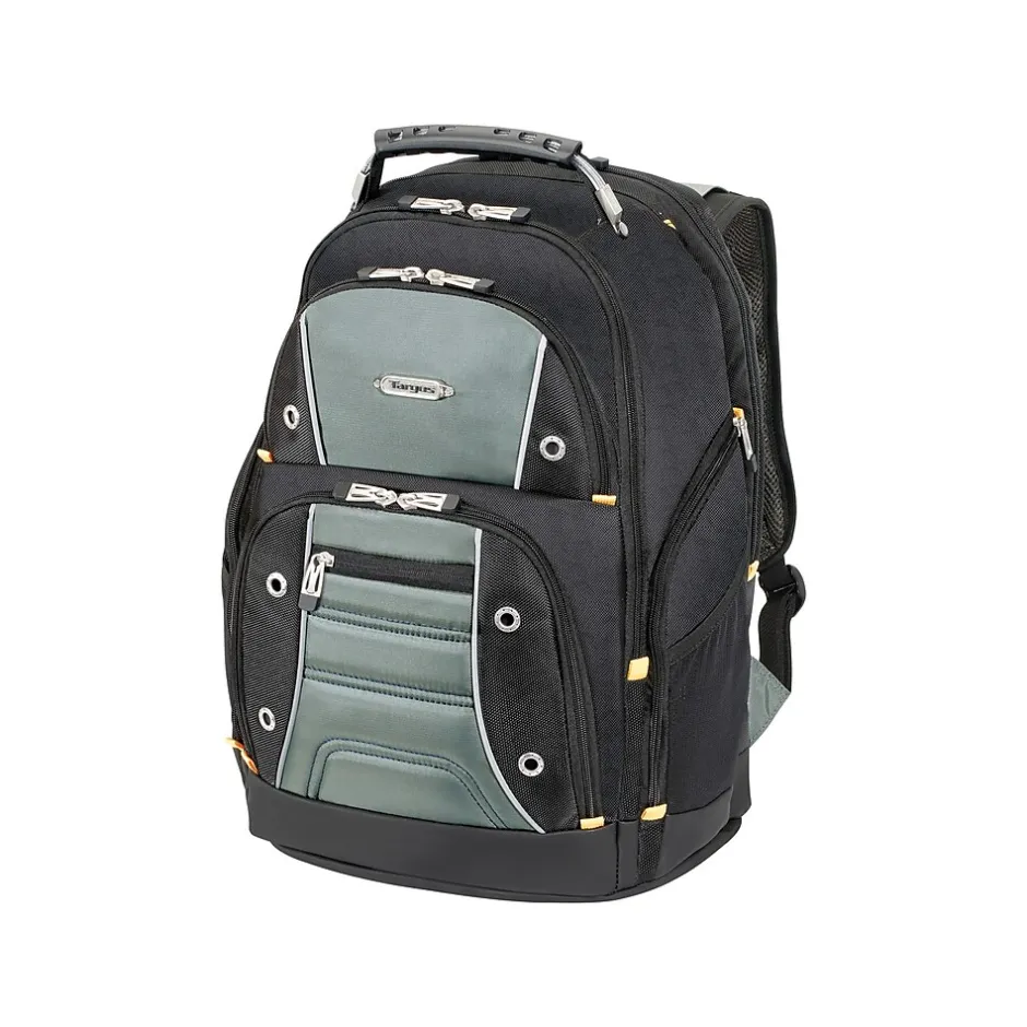 The Targus Drifter II laptop backpack is designed to fit laptops with screens up to 17″. This backpack features two large compartments for storage, including a padded laptop compartment that keeps the device secure and separate from other items carried in the case. The extremely thick padding on the back panel includes a large hidden zippered compartment and is strategically placed to provide lumbar support for your back. The heavily padded shoulder straps provide comfort for travel and include a removable mobile phone pocket as well as an elastic loop specifically designed to hold sunglasses on the shoulder strap. The main front compartment includes pockets for business cards, a mesh accessory pocket, and key clip. A convenient and soft lined pocket is scratch-resistant to store fragile accessories, such as glasses, and more. To keep files in order, the interior divider provides a safe place to store documents. Focusing on durability, the Drifter II backpack features a weather-resistant bottom, thick industrial zipper pulls, and a sturdy molded plastic handle supported by metal grommets and cabling. The backpack offers a rugged case full of storage options and protective compartments for important devices.