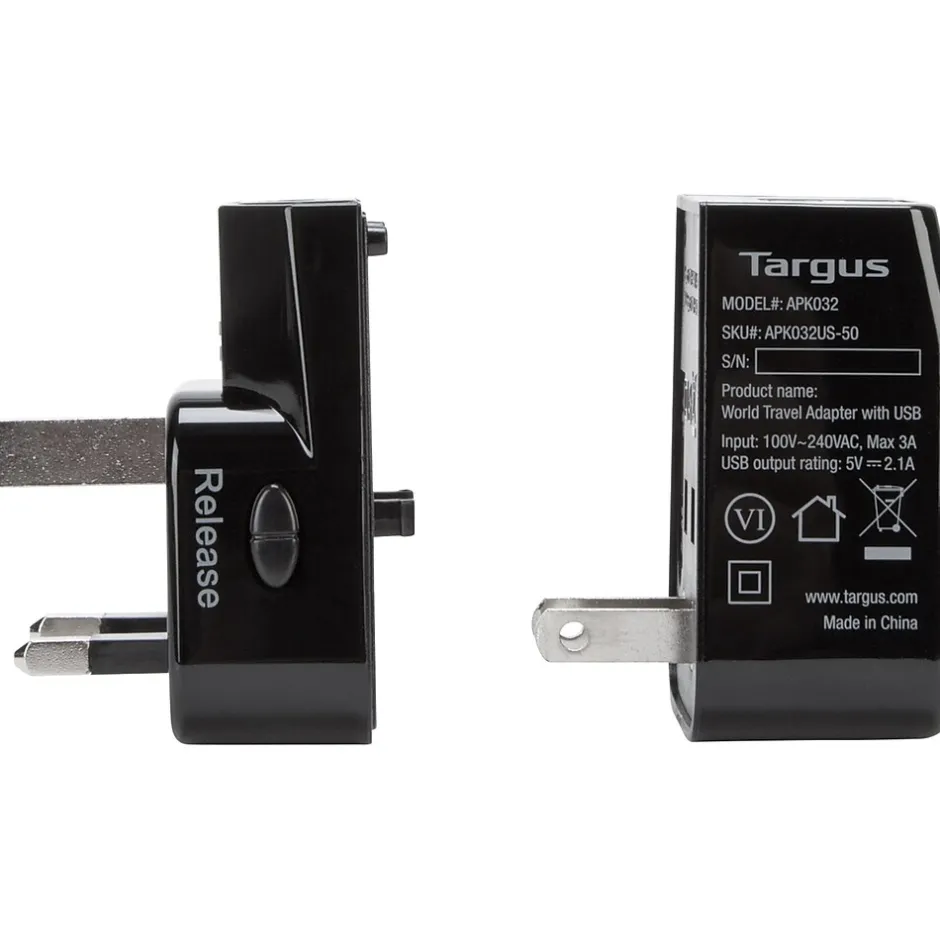 Make devices compatible with multiple types of outlets using this power adapter. A compact design offers easy portability, while the four integrated charging plugs provide compatibility with various international outlet formats. This Targus two-port USB world travel power adapter has two USB ports so you can charge devices simultaneously.