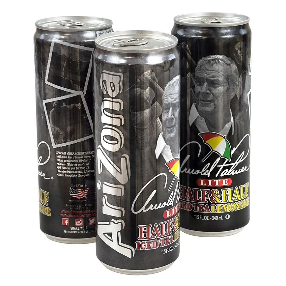 Enjoy the best of both beverage worlds with half iced tea, half lemonade in this delicious Arizona Arnold Palmer Half & Half. The perfect cold beverage to enjoy on a hot summer day with the great flavor combination of tea and lemonade. This popular drink will delight your coworkers when they see it in the break room or vending machine. Plus, with thirty Arizona Arnold Palmer Half & Half beverages in each case, it is the perfect bulk purchase to ensure you won’t be running out anytime soon!