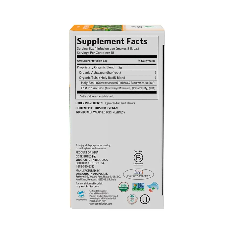 - Ingredients: ashwagandha, tulsi blend, Indian fruit flavors