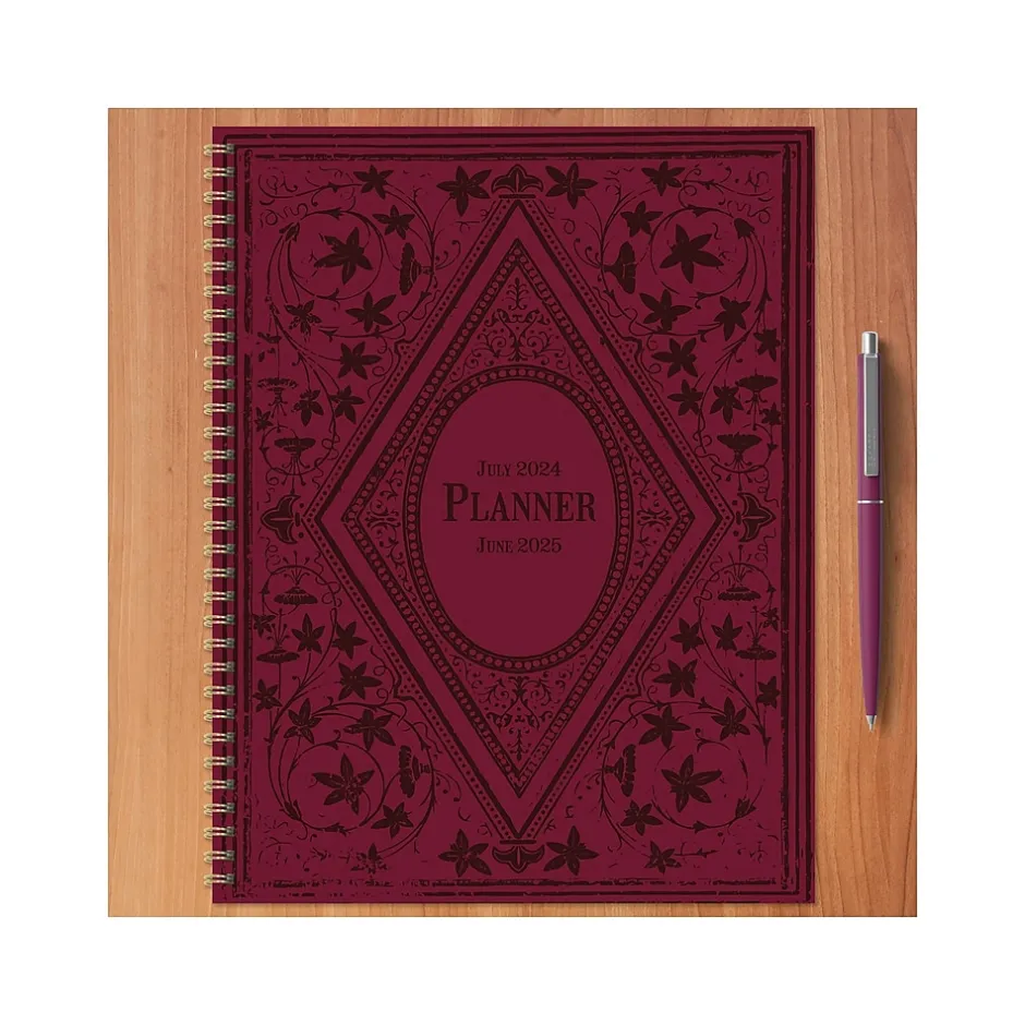 This large Merlot weekly and monthly planner from the Bibliophile Series by TF Publishing combines sophisticated fashion with outstanding quality and functionality for your planning needs. The faux-tabbed pages allow for detailed scheduling and quick access. This planner will keep you organized and looking stylish everywhere you go.