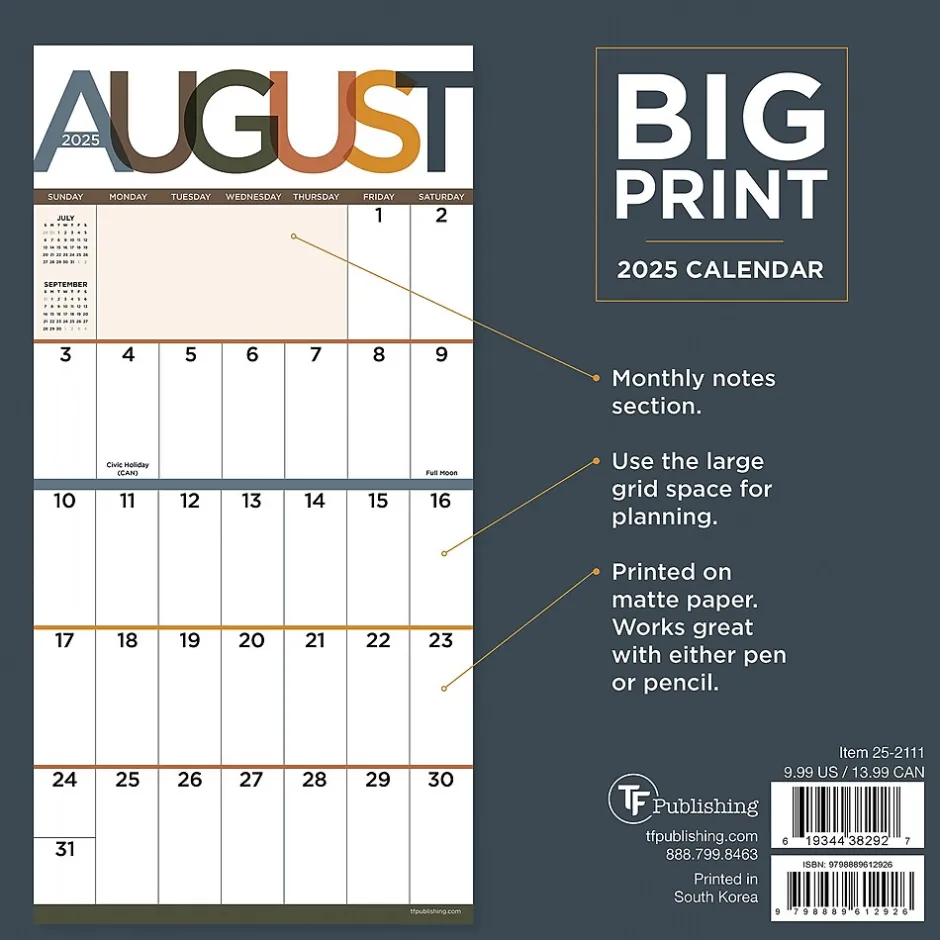 | Refillable Calendar Items of a particular grouping, as merchandised and labeled by a manufacturer | Big Print |