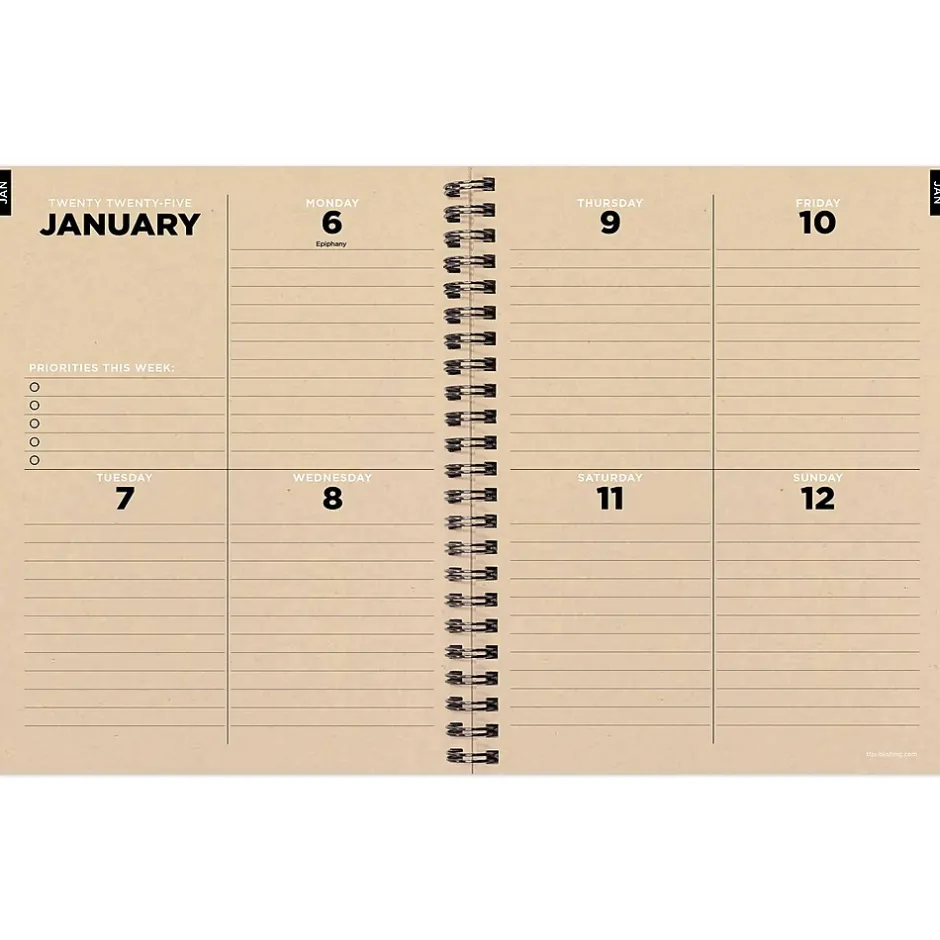 - Inside pages are designed with faux monthly tabs for easy access to weekly planning