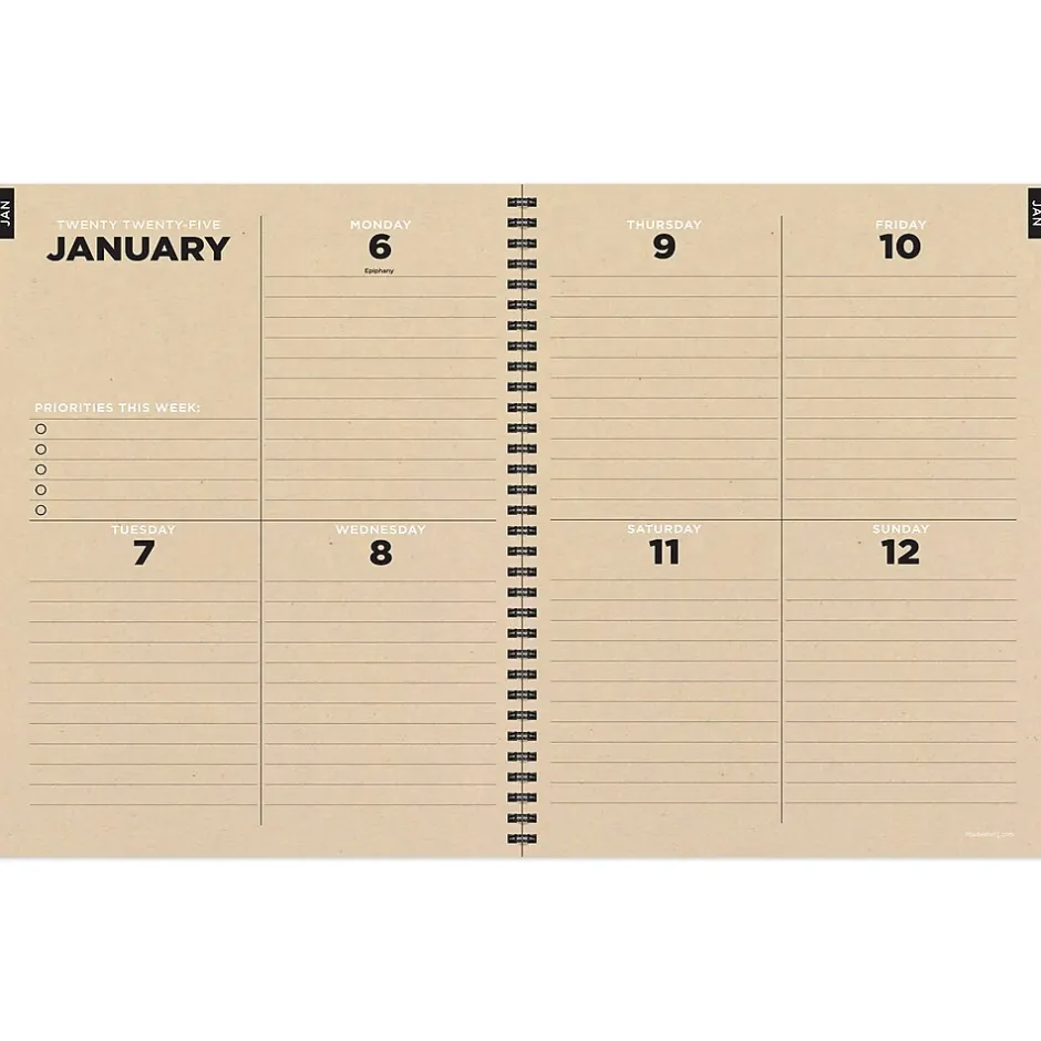 - Inside pages are designed with faux monthly tabs for easy access to weekly planning