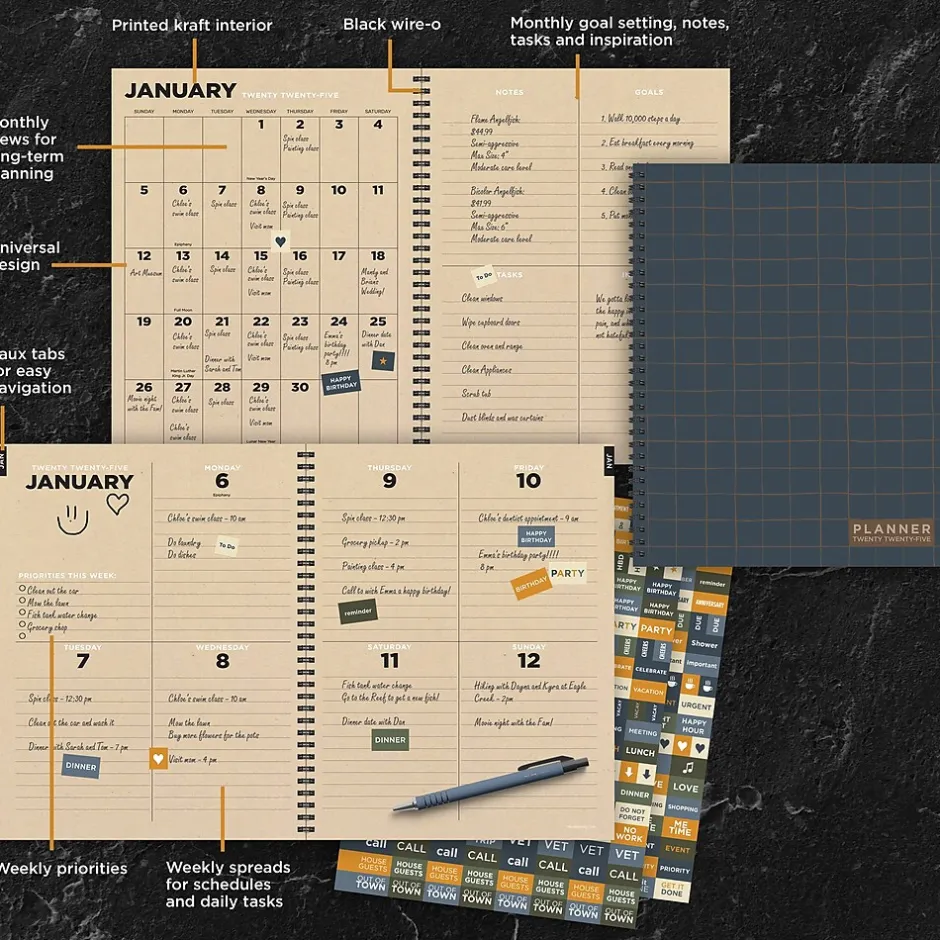 Planning your year is a snap with this large sized 12-month 2025 planner!