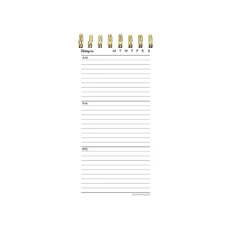Navy and light blue stripes give this daily agenda a professional look which is still full of personality. Conveniently sized at 4″ x 8.5″, it is perfect for any on-the-go lifestyle. With the open-dated format, you can choose how structured your plans will be for a particular day. Each of the 130 lined perpetual sheets has a place to circle which day of the week it is and a place for the day’s date. Each sheet is also segmented into three sections: morning plans, afternoon plans, and etc. section for those extra daily reminders. The planner features wire-O binding that allows it to lay flat easily, a convenient flip between pages, and hard, durable front and back covers. Secured with an elastic band.