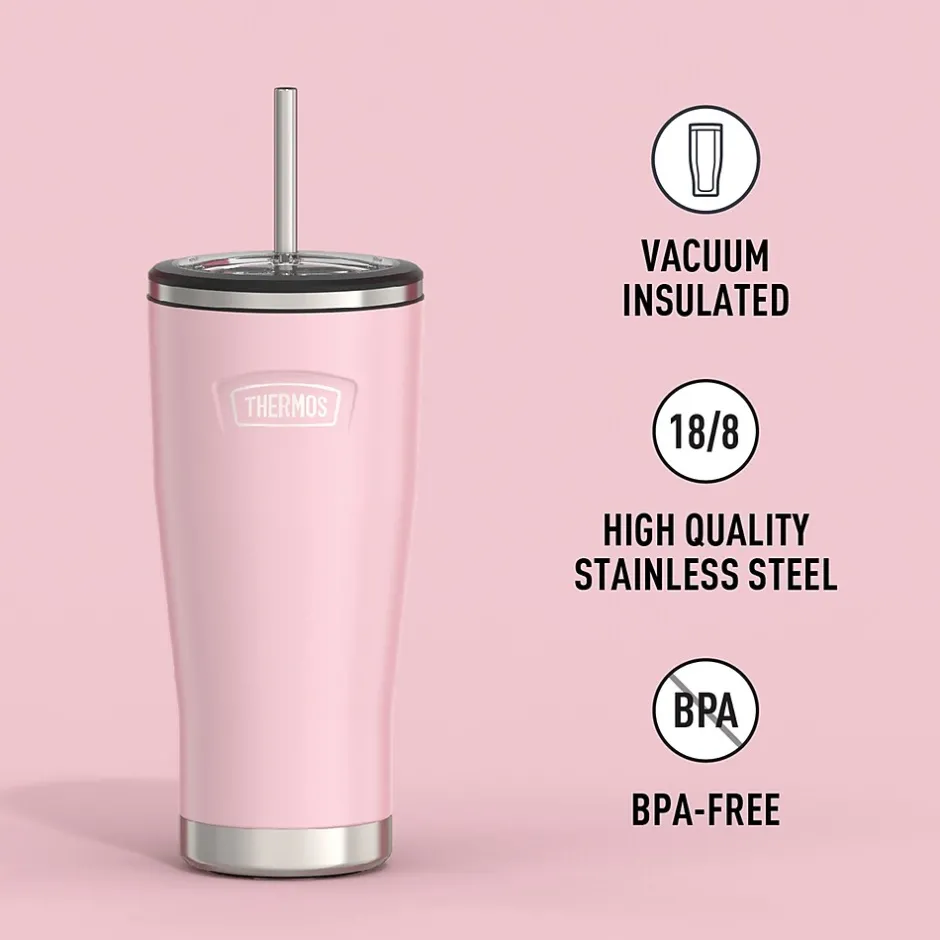 Starts cold. Stays cold. The Icon™ 24-Oz. Stainless Steel Cold Tumbler with Straw from Thermos® helps you stay hydrated to take on the day. It comes equipped with a stainless steel straw to keep up with whatever your day has in store. From the nonslip Griptec™ base to superior vacuum insulation and durable True-Coat™ finishes, the Icon™ Series by Thermos® is an ideal tumbler for everyday use. It’s dishwasher safe, but don’t use with hot liquids.