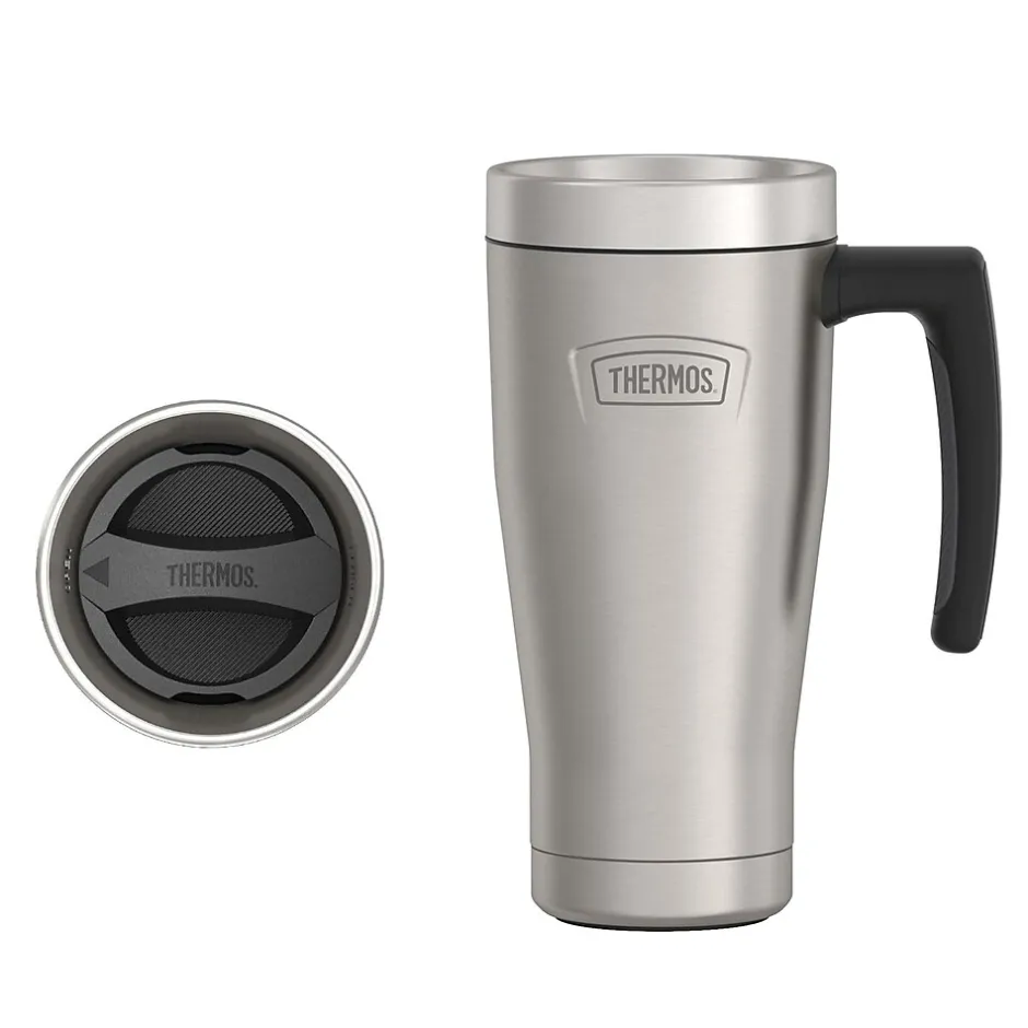 When you need your coffee hot, or your water cold, look no further than the 16-Oz. Stainless Steel Mug from the Icon™ Series by Thermos®. From the Thermos™ vacuum insulation technology, to the Dura-seal™ drink lid that is leakproof when closed, to the Griptec™ nonslip base and handle, this mug is truly iconic. Make every sip worth savoring with this 16-oz. Stainless Steel Mug. Hot, fresh-tasting coffee at every sip, wherever your day takes you.