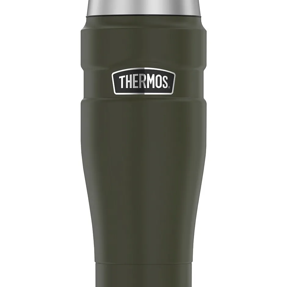 An ideal choice for on the go, the Thermos 16 Oz. Stainless King Stainless Steel Travel Tumbler is built to last and loaded with features to make for a more enjoyable drinking experience. Thermos vacuum insulation technology virtually eliminates temperature change within the beverage container by creating an airless space between 2 stainless steel walls. The result is a superior insulated container you can depend on to keep your beverages hotter, colder, fresher, longer. This travel tumbler keeps beverages hot for 7 hours or cold for 18, making it a great choice for long days out and about or in the office. Constructed with double wall stainless steel, this 16 oz. travel tumbler is durable, yet its sleek design is both eye-catching and functional.