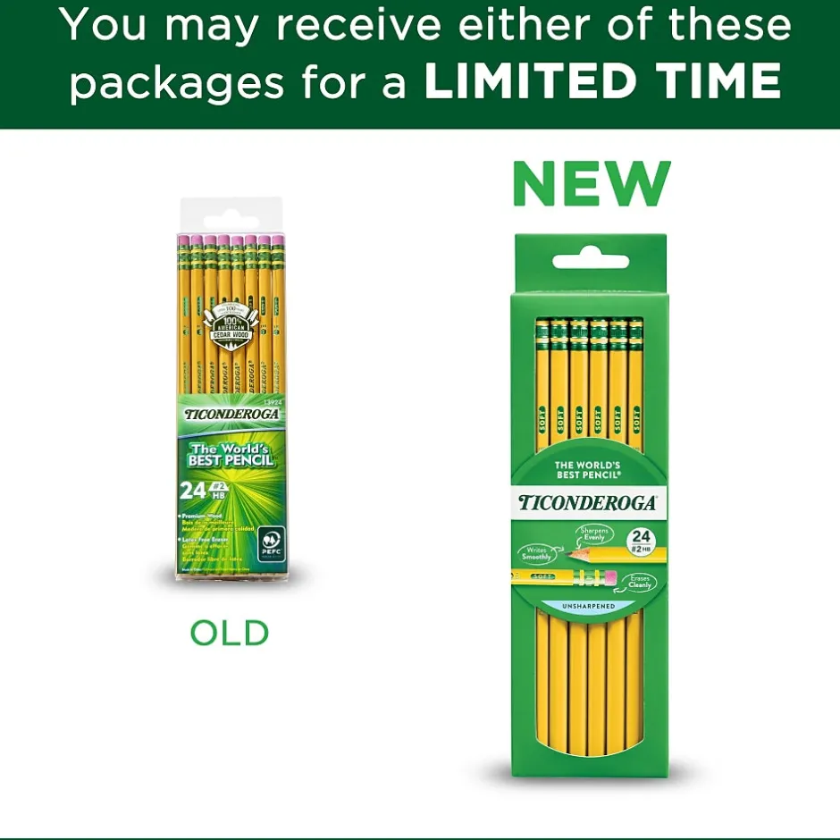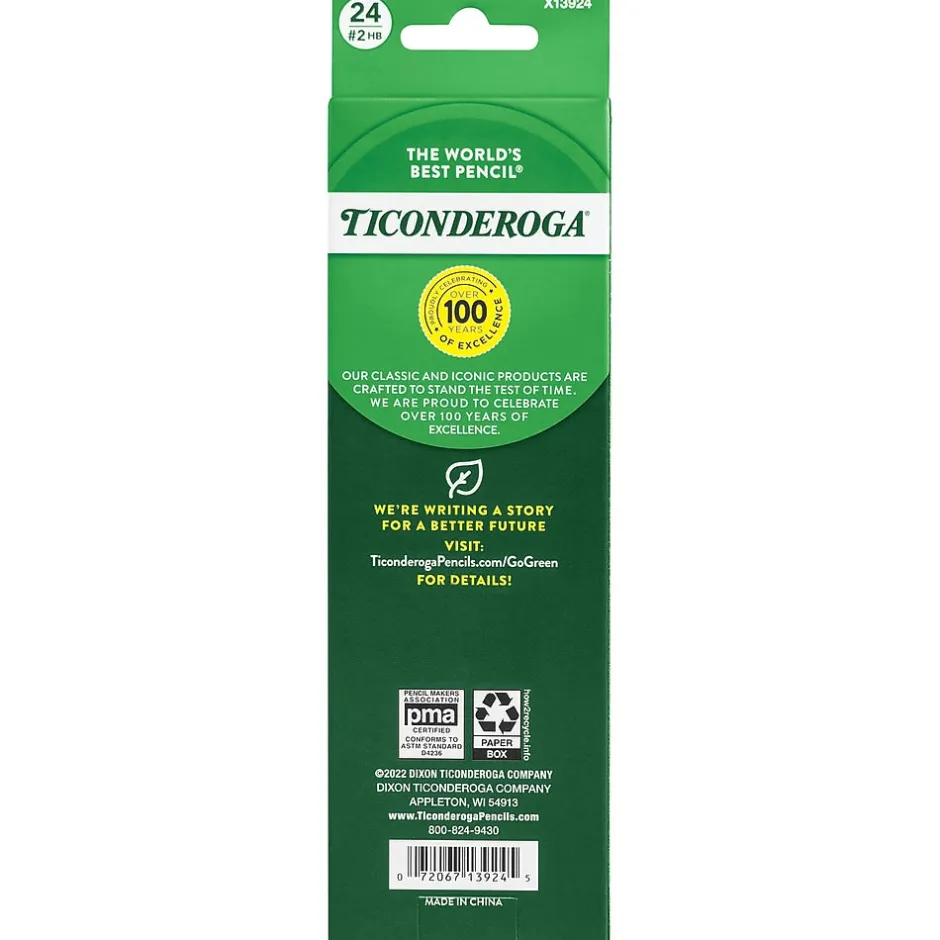 Write easy-to-read notes with these Dixon Ticonderoga wood-case #2 soft, yellow-barrel pencils. These pencils are sold in a pack of 24, which is ideal for busy offices and classrooms, and the solid graphite core delivers a smooth performance and easy-to-read text. These Dixon Ticonderoga wood-case pencils have a latex-free eraser to make it easy to correct mistakes on paper.