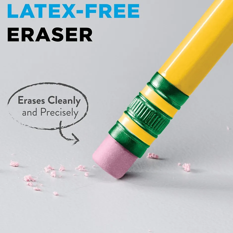 Write with smooth, consistent marks using these yellow-barrel pencils. The pencils are crafted from premium wood for durability, and the solid graphite core delivers easy-to-read print and a break-resistant point. These Dixon Ticonderoga wood-case pencils have a latex-free eraser that makes it easy to correct mistakes and eliminate stray marks.