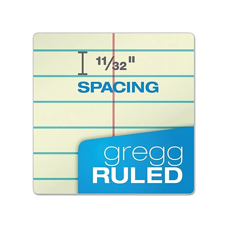 The classic flip-top format gives quick access to notes and lists. The 6″ x 9″ size tucks easily into any backpack or bag. Perforated sheets detach easily. A sturdy no-snag coil resists catching on papers or clothing. Proudly made in the USA. Assorted color covers: red, black, blue & green. Green tint paper. Gregg ruled, 80 sheets. 4 Pack.