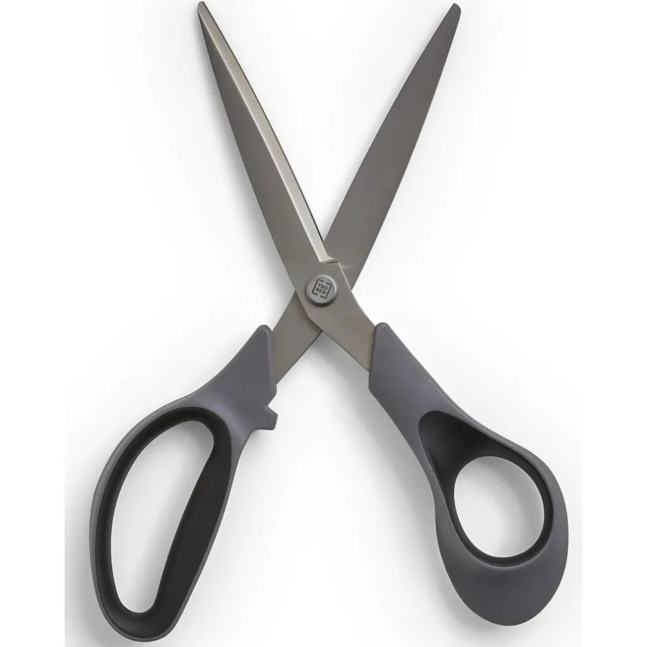 TRU RED™ 8-inch straight-handle scissors have an innovative 3-D curved blade to maintain sharpness and provide precise cuts each and every time. The titanium coating adds durability to blade strength and sharpness, giving a consistent cut over time. The ergonomic soft-touch handles is ideal for right-handed cutters making these a great tool for the office.