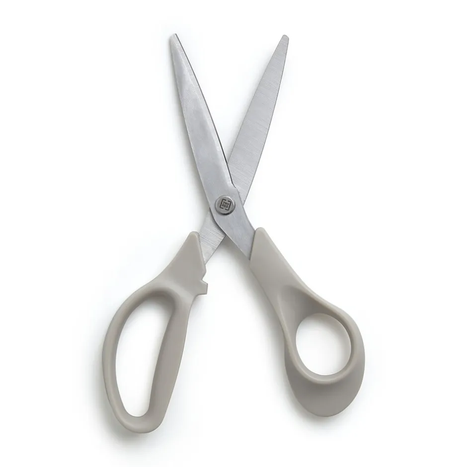 Trim through fabric, paper and metal foils with these 8-inch scissors. Titanium coating on the blades helps improve strength and durability, while soft-touch handles provide a comfortable grip. These TRU RED™ 8-inch gray straight-handled scissors have an ambidextrous design for flexibility.