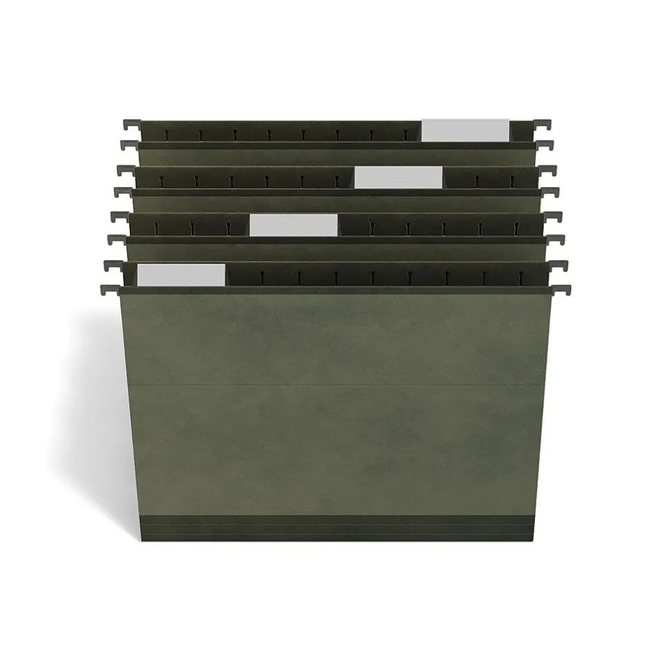 Eliminate paper clutter in your workstation with these standard green hanging file folders. The rigid metal rods with extended hooks make placement on compatible rails simple, while the lighter shade on the inside makes it easy to locate business documents. These TRU RED™ five-tab green hanging file folders feature coordinating colors that match with the rest of the Business Essentials range for a cohesive look and collaborative organization.