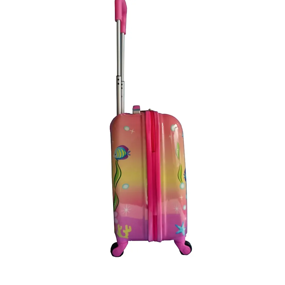 The Tucci Goldymerm Kids Luggage in Pink (T0392) combines whimsy and practicality, perfect for your child’s travel needs. Adorned with a delightful mermaid design and a shimmering gold accent, this luggage brings a splash of magic to every journey.
