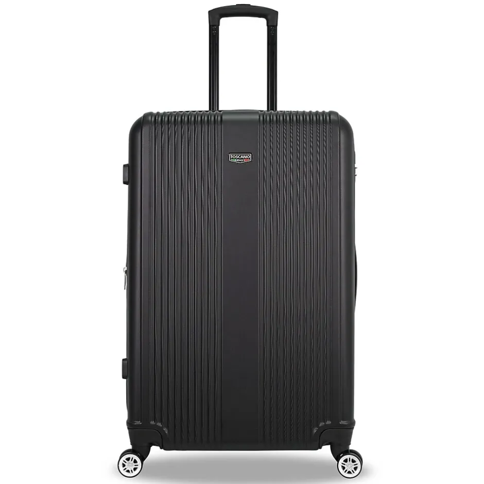 The Toscano Ottimo 2-Piece Luggage Set in Black (S0536-02PC-BLK) combines sleek design with reliable performance, making it a perfect travel companion. This set includes a compact carry-on and a spacious checked bag, each featuring a classic black, scratch-resistant hard shell that offers both durability and a refined look.Crafted from lightweight yet sturdy materials, the Ottimo set is designed for easy handling with 360-degree spinner wheels and an ergonomic telescoping handle, providing smooth, 360-degree mobility. The interiors are well-organized, featuring Toscano’s signature lining, adjustable straps, and multiple compartments to keep your belongings secure and tidy. The 2” expandable feature offers additional packing capacity, making it versatile for both short trips and longer journeys. Additionally, the built-in combination lock ensures added security for your belongings.