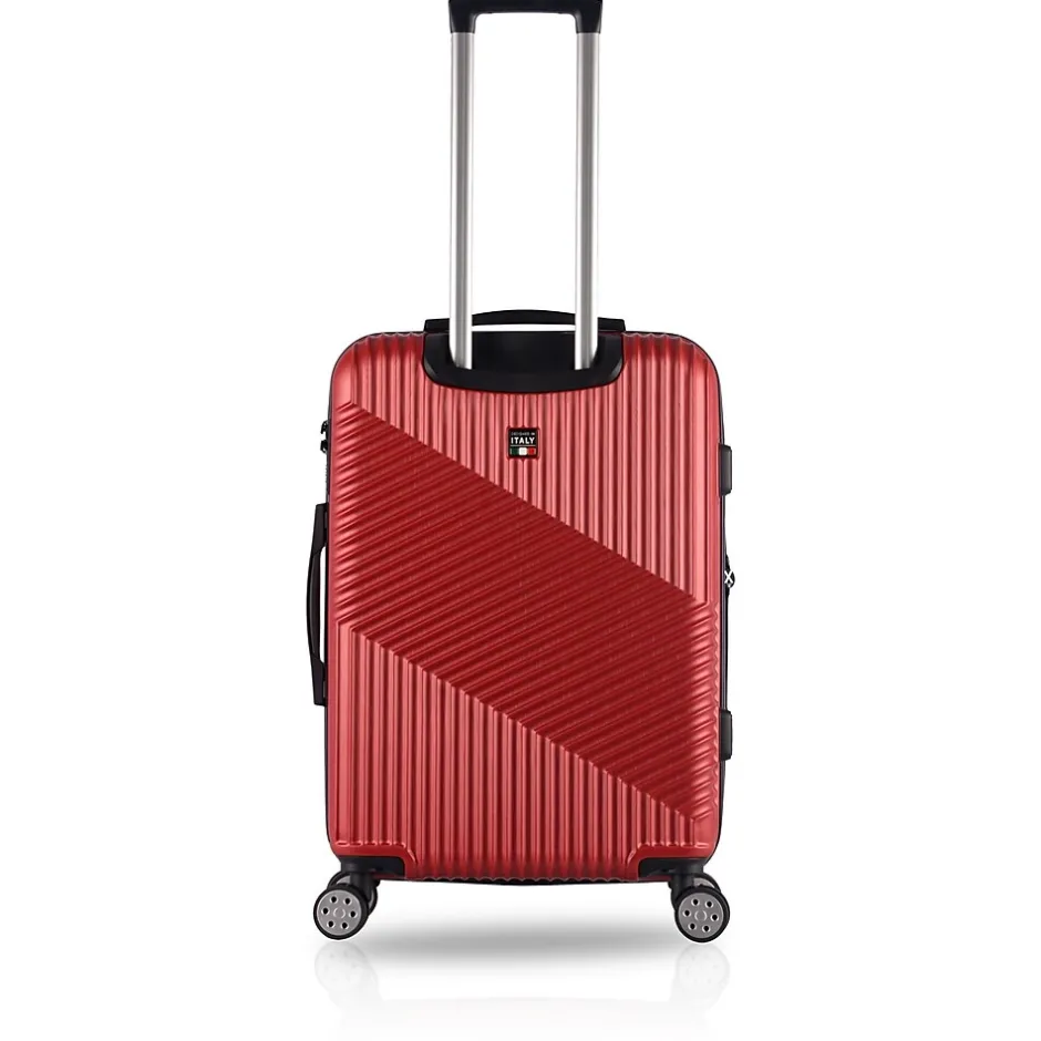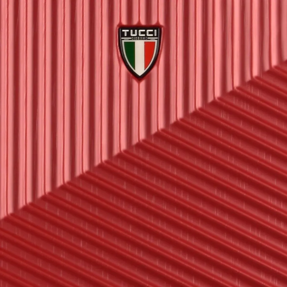The Tucci Guida 3-Piece Luggage Set in Burgundy (T0269-03PC-BGDY) is inspired by the rich culture, nature, and history of Sicily, offering a stylish yet functional travel companion. This set includes a carry-on, a medium-sized suitcase, and a large checked bag, each featuring a curved design with elegant lines and a sophisticated burgundy finish. The microdiamond texture not only adds a touch of luxury but also provides scratch resistance for lasting durability.