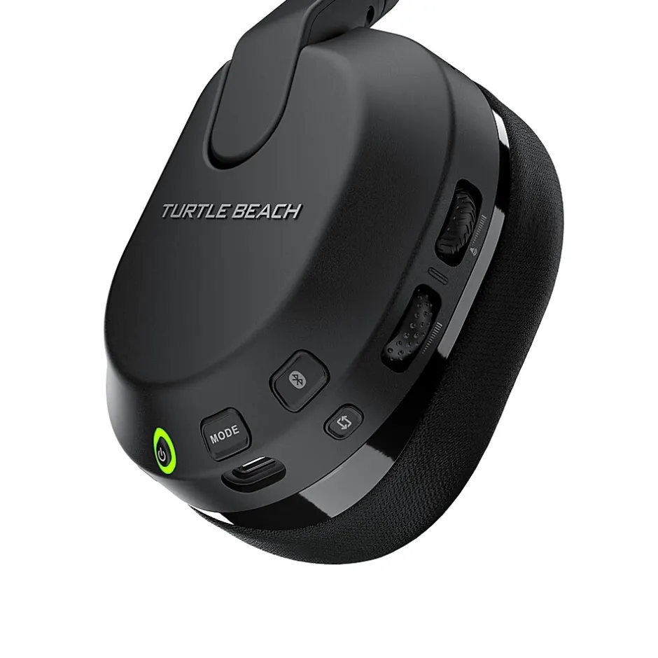 The Turtle Beach® Stealth™ 600 wireless multiplatform gaming headset for Windows PCs, PS5™ & PS4™, Nintendo Switch™, Steam Deck™ and mobile is refreshed and powered up for a third generation of gaming domination. With a history atop the wireless console headset charts, the Stealth™ 600 enters its 3rd Generation with a model designed exclusively for PC gamers. Experience low-latency wireless connectivity on PC & PlayStation® consoles, plus built-in Bluetooth® lets you connect directly to mobile devices. Plus, switching between 2.4GHz wireless and Bluetooth® connections is made easy using the QuickSwitch button located conveniently on the headset. And only for the PC model, Waves 3D Audio lets you fine tune every aspect of your audio for complete immersion on your favorite titles. Be unstoppable with a best-in-class, 80-hour battery life featuring quick charge so you can get back in the game right away. Completely redesigned for the third generation of the Stealth 600, the all-new uni-directional, flip-to-mute microphone features A.I. noise reduction to ensure ultra-clear mic quality with the quietest background possible. Using the Swarm™ II desktop software for PC, or mobile app for iOS & Android devices, you can adjust noise gate, sensitivity, monitoring levels, and choose from four different mic presets, or even make your own with a custom 10-band microphone EQ. Clear comms are nothing if you can’t hear every vital game detail, so the Stealth™ 600 is packed with the legendary 50mm Nanoclear™ drivers for precise, detailed spatial audio quality. Plus, with Waves 3D Audio, a feature exclusively available in PC mode, you can customize your audio even further, for perfectly dialed-in audio immersion. And with the Swarm™ II app, you can cycle through four audio EQ presets, create up to five custom presets with a 10-band EQ, adjust game & chat volume mix, plus activate, or adjust Turtle Beach® exclusive Advanced Superhuman Hearing® sound setting. Play for hours in total comfort with a pressure-relieving, ultra-comfortable design. Memory foam ear cushions wrapped in athletic-weave fabric keep your ears cool and cozy over extended game sessions. Plus, the cushions feature ProSpecs™ glasses relief technology, so whether you wear gaming or prescription glasses, you’ll enjoy the same great comfort. For added customization, you can remap the secondary wheel & mode button on the headset to distinct functions to better suit your gameplay. And the Stealth 600 is built for long-lasting, comfortable use with an adjustable, lay-flat design.
