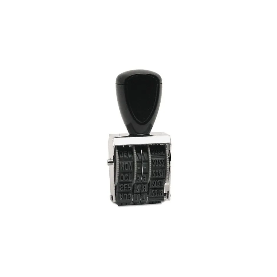 Reliable rubber stamp offers 10 years of dates for long life. This office essential features a heavy-duty steel frame that stands up to active use. Four-band date includes months, days, and 10 years. Adjustment wheels makes changing the date simple and neat. Requires separate ink pad.