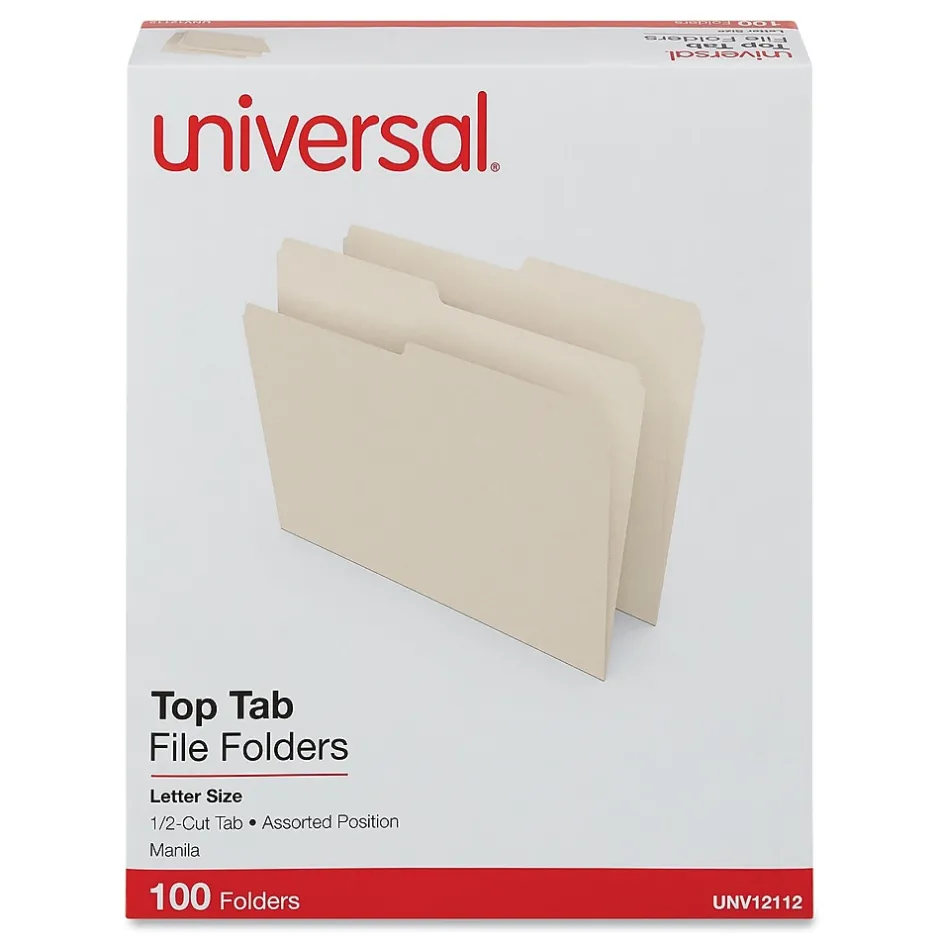 | Paper Size The number of notched tabs along the top or side of the file folder used for categorizing files.Hanging file folder tabs are repositionable to allow you to customize the tab position. | Straight |