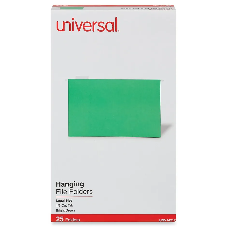 Universal Recycled Hanging File Folder, Legal Size, Bright Green, 25/Box (UNV14217) Sale