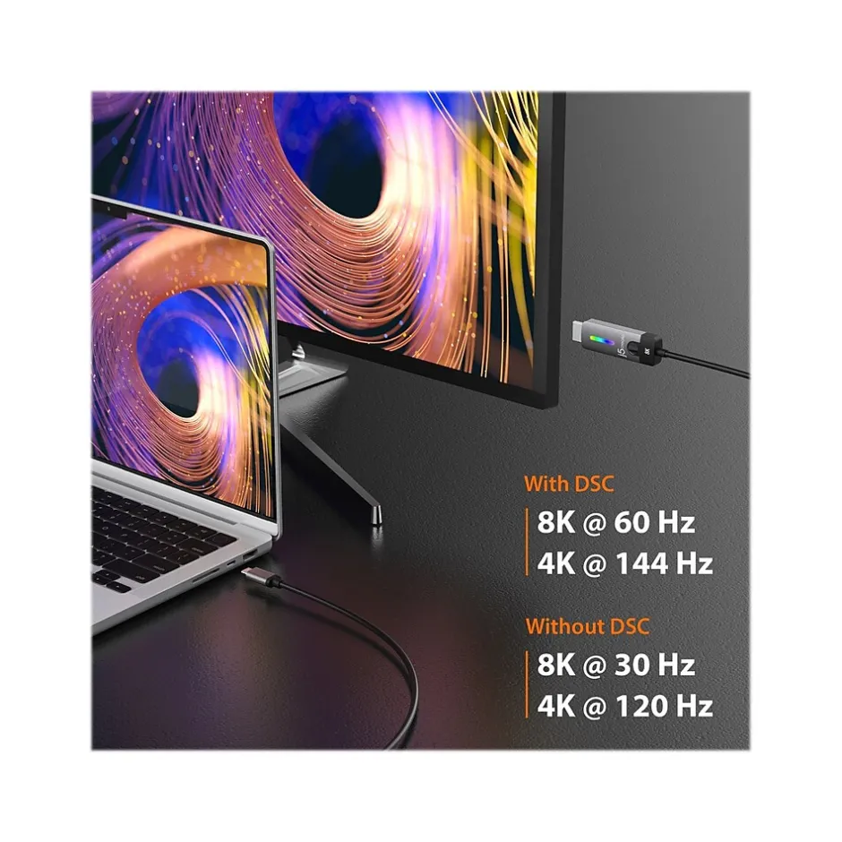 - 8K cable allows you to conveniently connect your laptop, MacBook, Chromebook, or tablet to an external 8K UHD/4K 144Hz monitor, 8K UHDTV, and other display devices with an HDMI input