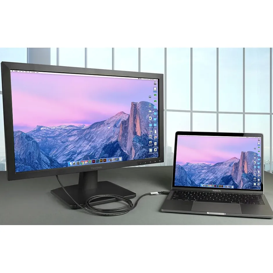 The Plugable USBC-VGA-CABLE 6′ video cable in black, is to connect an older VGA equipped monitor. It is compatible with iMac Pro, MacBook 2017, Pro, Pro 13″, Pro 15″, Retina 12″ 2015, Retina 12″ 2016, Dell XPS 13, XPS 15, Chromebook Pixel 2015, ThinkPad P50 and ThinkPad P70. It has 15-pin HD-15 male VGA connector on the first end and USB 3.1 type C male connector on the second end.