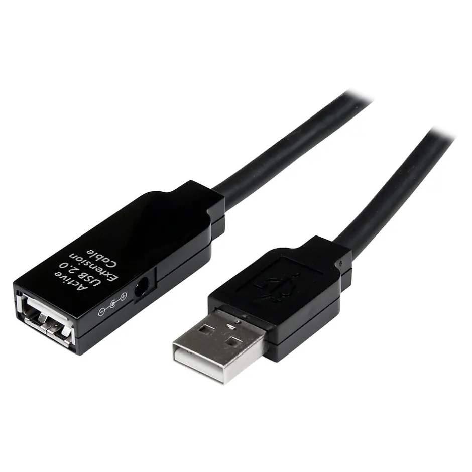 - Black USB 2.0 cable offers an active extension of USB 2.0 devices