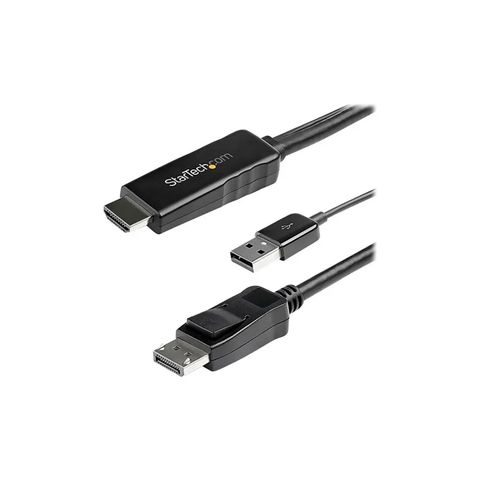 Active HDMI to DisplayPort Cable HDMI 1.4 DisplayPort 1.2 USB Power 2-Year Warranty. This 2 m (6ft.) HDMI to DisplayPort cable with USB power lets you connect an HDMI video source, such as your laptop, desktop, Blu-ray player, or camera, to a DisplayPort monitor or projector without the need for additional video cables. The adapter cable features male connectors enabling you to connect your video source directly to the display, with no need for additional adapters or cables. Convenient Connectivity The active HDMI 1.4 to DisplayPort 1.2 converter cable offers plug-and-play installation, providing a hassle-free setup with no software or drivers to install. The adapter is powered via a USB port, avoiding the need for an extra power adapter. Astonishing picture quality With support for 4K at 30Hz, you get a sharp, crisp picture that’s richer and more true-to-life than traditional HD, with far greater detail. The HDMI to DisplayPort Adapter cable delivers Ultra HD content to your DisplayPort monitor and supports 7.1 channel surround sound audio. The HDMI to DisplayPort adapter is backward compatible with 1080p and 1440p displays, which makes it a great accessory to future-proof your existing setup for 4K video. The Choice of IT Pros Since 1985 StarTech.com conducts thorough compatibility and performance testing on all our products to ensure we are meeting or exceeding industry standards and providing high-quality products to IT Professionals. Our local StarTech.com Technical Advisors have broad product expertise and work directly with our StarTech.com Engineers to provide support for our customers both pre and post-sales. The HD2DPMM2M is backed by a StarTech.com 2-year warranty and free lifetime technical support.