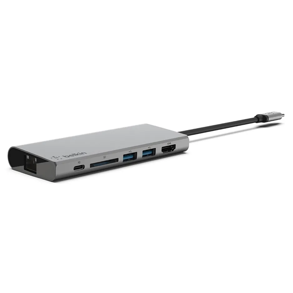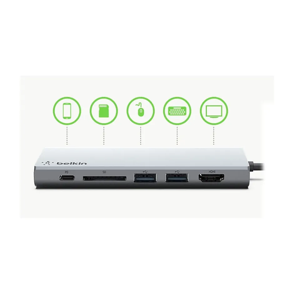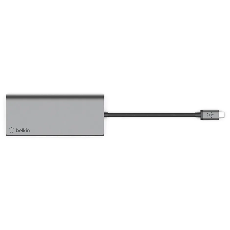 This Belkin Multimedia USB Type-C multiport hub with up to 5Gbps bandwidth is the perfect all-in-one solution to connect your USB Type-C laptop to multiple devices. Lead a seamless presentation or create your ultimate workstation, with the USB Type-C multiport hub you can connect projectors, 4K 30Hz monitors, SD cards, and thumb drives to your laptop. It also supports pass-through charging up to 60W, eliminating the need to choose between port expansion and power. Plus, with 1Gb Ethernet port, you’ll always have a safe and secure internet connection.