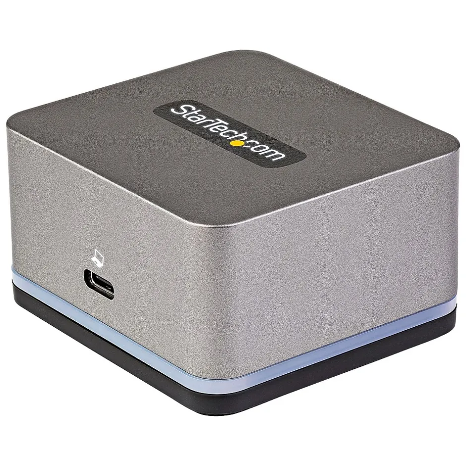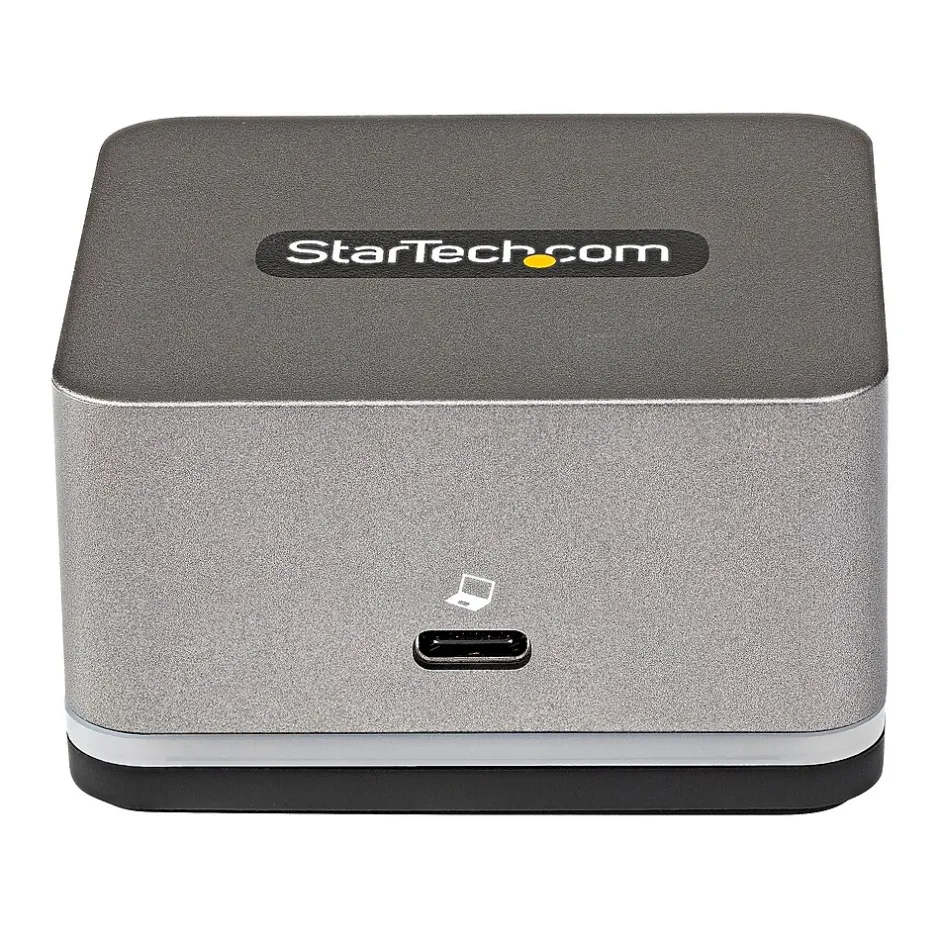 This StarTech ultra compact USB-C docking station with 4K 30Hz HDMI, USB-A ports, USB-C Power Delivery, plus gigabit Ethernet connects to your tablet or smartphone to give you a desktop experience from your mobile smart devices, all through a single USB-C connection.