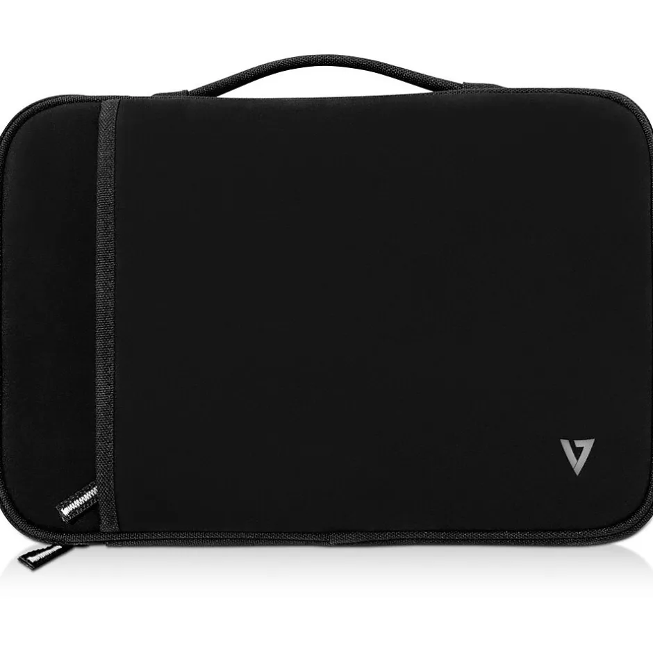 The V7 12.2″ Neoprene Sleeve with a self-retracting handle allows you to easily carry your MacBook Air or any other Chromebook up to 12.2″ or slip it into another bag for even more storage. It features a detachable shoulder strap and ID holder, perfect for students. With a form-fitting design, the sleeve protects your laptop in style, plus the durable top and side-pocket zippers provide easy access to your device and accessories. The Sleeve’s exterior neoprene and soft fleece interior materials cushion and protects your equipment so you can be sure your laptop is safe while you’re on the go.
