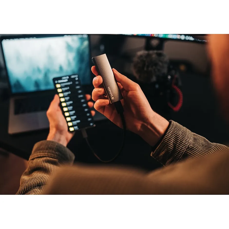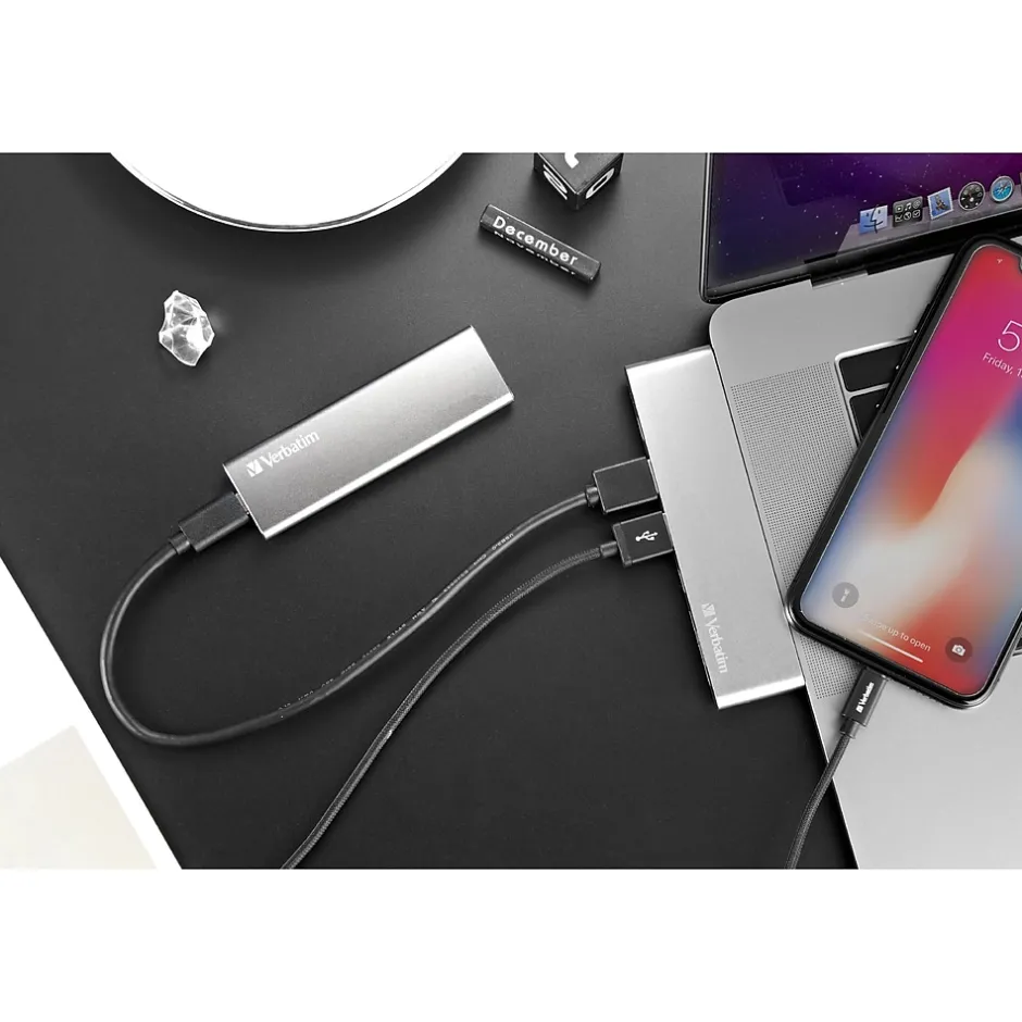 Lightweight, fast, compact and durable, Verbatim’s Vx500 external SSD provides reliability in external data storage options. Offering data transfer rates up to 500MB/s, the Vx500 external SSD is perfect for users that demand maximum performance in data storage devices. With USB 3.1 Gen 2 connectivity, the Vx500 handles large data transfers quickly, perfect for video editing, interchanging large amounts of data, or maximizing gaming performance. The Vx500 external SSD operates silently and features low power consumption for extended laptop battery life. The Vx500 external SSD is 100% compatible with USB 2.0 and is backed by a 2-year limited warranty.